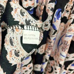 Passion Fusion Womens Mini Dress Black Cream Orange M Geometric Print Short Sleeves Gathered Waist Loose Casual Trendy EUC
