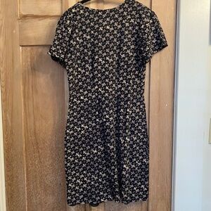 Black & Beige abstract floral print. Very comfy and flatting dress!