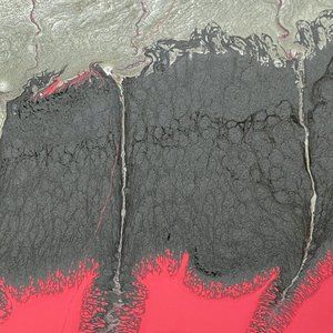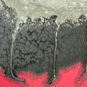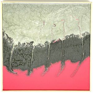 ‘Passion Play’ is a vibrant deep pink and grey original one-of-a-kind handmade Liquid Oil Paint pour painting by Artist Tristina Dietz Elmes.
