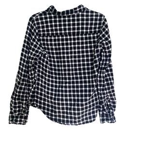 Passport Black White Plaid Soft Knit Button Down Flannel Shirt Size Large