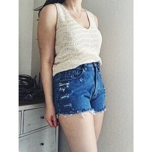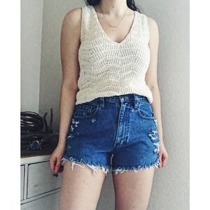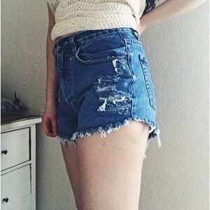⋆super cute Passport cut off distressed / destroyed denim jean shorts with a high rise