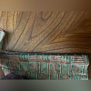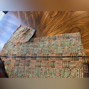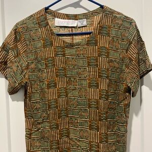 Vintage short sleeve top with a geometric pattern of brown & green.