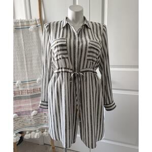 Passport Grey White Striped Rayon Button Down Long Tunic Shirt