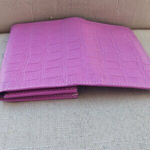 Passport Holder Pink Genuine Leather Purse Wallet Card Holder Multi Compartments