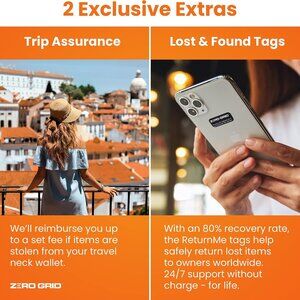 Added Security for Peace of Mind - Designed for convenience and safety, this travel wallet includes two recovery tags from ReturnMe, a global lost & found service. Attach them to your phone, passport, or laptop, and if lost, the service helps facilitate their return.