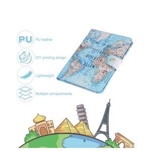 Passport Holder Wallet Protective Premium PU Leather Travel Wallet Passport Cover Case Blocking Case for Travel Passports Identity Theft Protection(#Map)