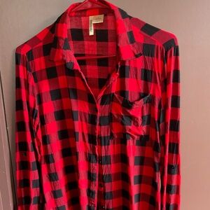 100% Rayon for an extremely lightweight shirt that is super comfy. Size S, excellent condition, house of nonsmoker with no pets
