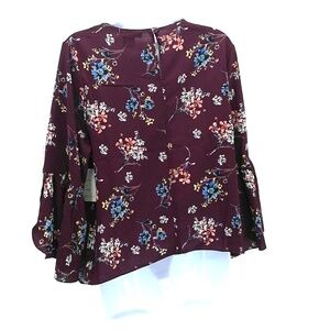 Passport women's multi colored floral top. Top has long sleeves that are bell sleeve style. H - 35 180401774 P
