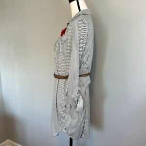 Passport Striped 3D Red Floral Flower Button Down Belted Dress Quarter Sleeve