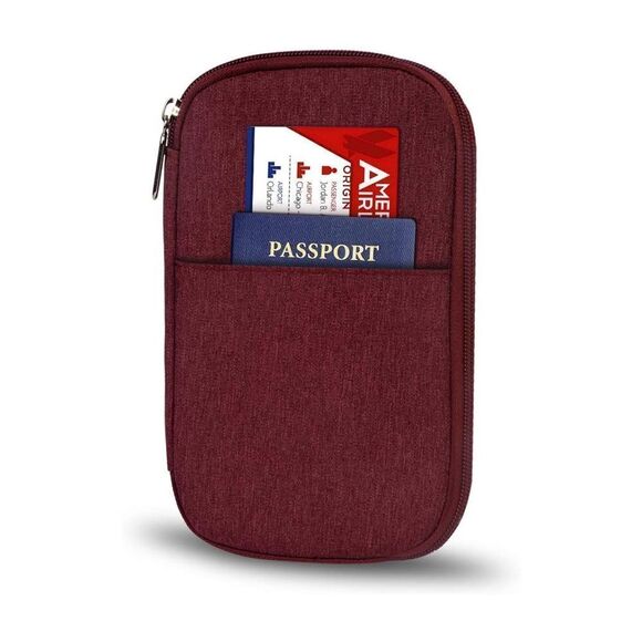 Passport Wallets, Multipupose RFID Blocking Travel Wallet Document Organizer Bag Waterproof Family Passport Holder with Zipper for Men and Women Fits 2 Passports(Maroon)