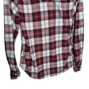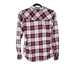 Passport Western Pearl Snap Plaid Button Up Shirt Womens Size M Red
