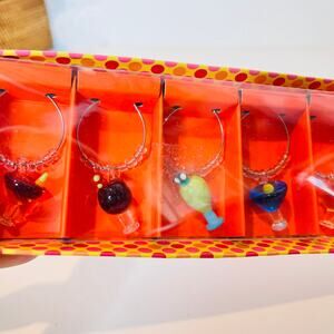 Passport Wine Glass Charms Reusable Drink Markers Tag Set of 6 Holiday Party