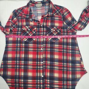 Passport Women's Red Plaid Tie-Front Long Sleeve Collared Crop Shirt Size Large