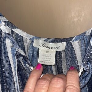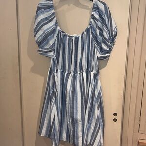Passport mini puffy sleeve striped dress with tassels ans gathered waist 2X