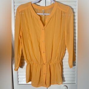 Passports New York & Company Orange Semi-sheer Button Up Top