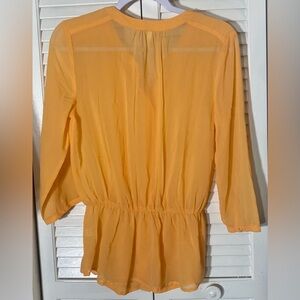 Passports New York & Company Orange Semi-sheer Button Up Top, Sz S, 3/4 Sleeves