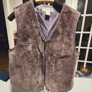 Stylish leather vest by Passports. Features a rich purple hue. Perfect for layering.