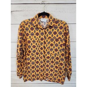 Passports Women Multicolor Geometric Cotton Long Sleeve Button Down Shirt Size S