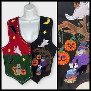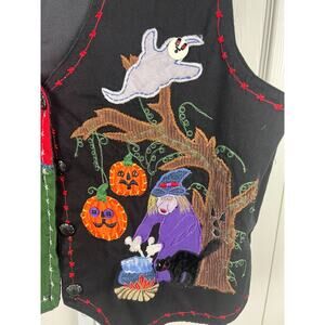 halloween vest, fall vest, spooky vest, halloween party, halloween costume, 90s, teacher, teachercore, whimsy goth, boho, bohemian, kidcore, bats, witches, pumpkins, ghouls