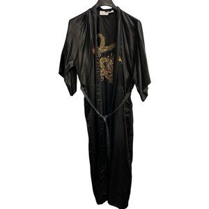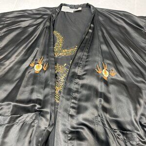Passports by Pier 1 Kimono Robe Womens OS Black Satin Long Embroidered Dragon