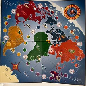 Players travel around the world map depicted on the game board to fill their passports with stamps. Along the way, players must attempt to answer questions pertaining to the diverse peoples and countries of the world.