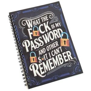 Funny password keeper book plus websites and hints! 5.5” X 8” with cardboard cover. 70 front and back pages. New without tag.