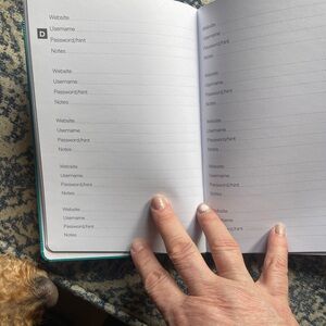 Vibrant blue notebook featuring a star design. Perfect for keeping password and website information in one place.
