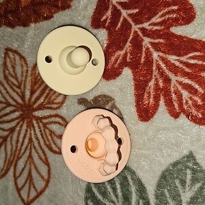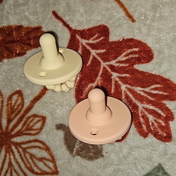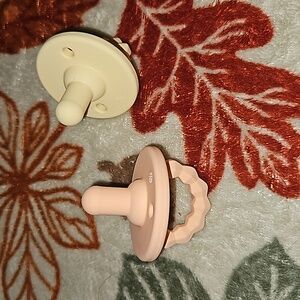 Silicone softees pacifiers & teether 2 pack. Textures handle doubles as a teether, durable 100% food grade silicone. Still in perfect condition, just like all the passys I have and will be listing he just doesn't take them anymore. He only seemed to like the ones specifically from the NICU. Tried one and the other was untouched.
