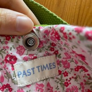 Lining is floral print and bag contains a magnetic clasp.
