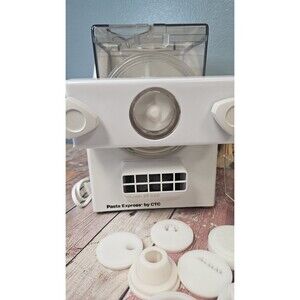 The Pasta Express X2000 is an electric pasta maker that is designed to effortlessly create delicious homemade pasta. This automatic pasta maker features adjustable settings for thickness and includes attachments for different types of pasta shapes. The machine is easy to clean and comes with components such as blades and recipes to help users get started. With a sleek white design, the Pasta Express X2000 is a convenient and versatile addition to any kitchen for pasta lovers looking to enjoy freshly made pasta at home.
