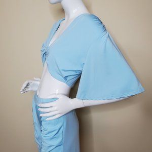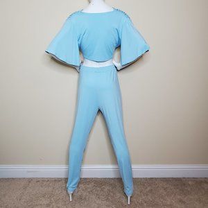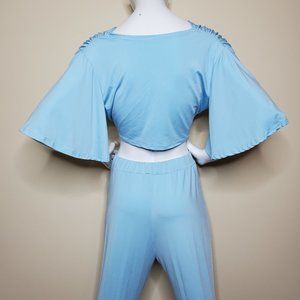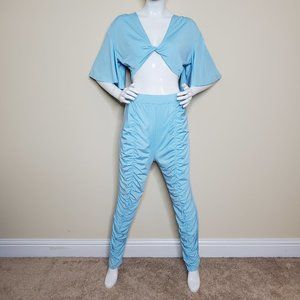 Pastel Baby Blue Two Piece Trendy V Neck Bat Wing Top w/ Skinny Fit Pant SZ L