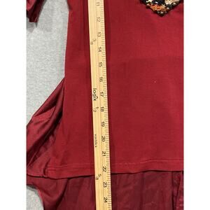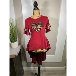 Pastel Brand Women's Sequin Heart/Leopard Red Shirt High Low Hemline Small Top
