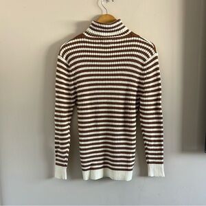 Pastel Brown and White Striped Turtleneck Sweater
