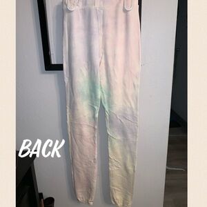 Pastel Cloud Matching Tie Dye Sweatpants in Knit French Terry Cotton with drawstring. These are like long straight fitting sweatpants. But the fabric has to be the softest ever. It’s incredible & worth every penny!! Non-elastic waist w/ functional drawstring & elastic ankle cuffs. Stretchy & a straight fit through the legs.
