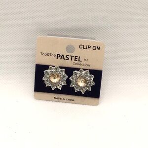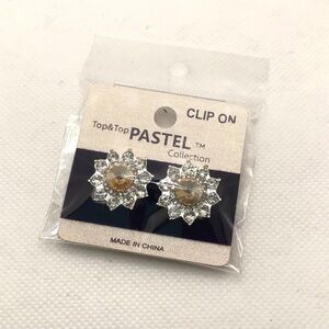 Pastel Collection Crystal & Gold Rhinestone Flower Shaped Clip-On Earrings. New on jewelry card in plastic bag. Will be shipped in a small gift box. * non-pierced.