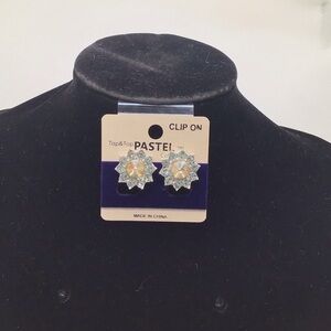 Pastel Collection Crystal & Gold Rhinestone Flower Shaped Clip-On Earrings. New on jewelry card in plastic bag. Will be shipped in a small gift box. * non-pierced.