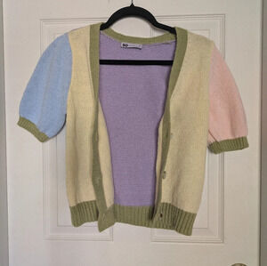 Pastel Color block Cropped Cardigan