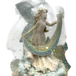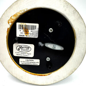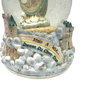 Delve into a whimsical world with the Pastel Fairy Castle Rainbow Visions Snow Globe, a captivating piece by Marjorie Sarnat, showcased by the San Francisco Music Box Company. This enchanting globe, dating back to 1997, is a tribute to the timeless tale of Sleeping Beauty, inviting collectors and Disney enthusiasts to cherish a nostalgic keepsake. With its vibrant pastel hues and intricate design, this snow globe is a visual masterpiece that brings the magic of fairy tales to life. It's a treasure that not only plays the song "Once Upon a Dream" from Sleeping Beauty, but also serves as a charming display piece, perfect for adding a touch of wonder to any collection or setting.