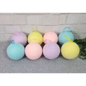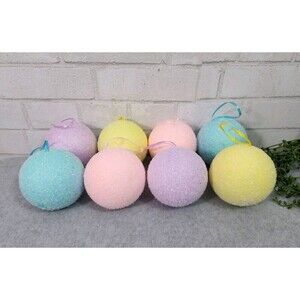 Up for sale is this cute and fun 8 pc set of Pastel Flocked Ornaments Set Christmas Tree Pink Blue Yellow Purple 4"