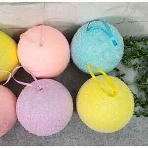 Includes 8 ornaments - 2 each of pastel pink, purple, yellow, and blue