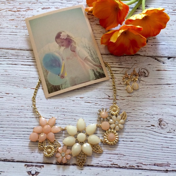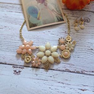 New Kate Spade Flower Inspired Flower Bib with matching earrings. Super cute to go with Spring and Summer dresses and even just a tshirt. Gold plated link chain and resin stones.