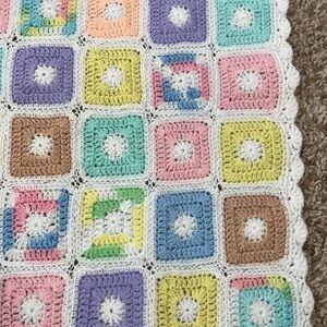 Pastel Granny Square Baby Lap Blanket w/ Scalloped Edges