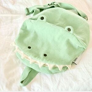 • Features: 3D floppy eyes | White felt teeth | Dino/croc/gator face flap | Adjustable straps | Zippered compartment | Top loop handle