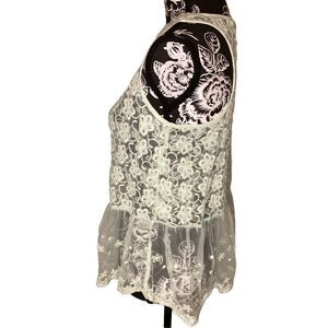 Pastel Green Ruby & Bloom Floral Lace Tank Top Ruffles Boho Bohemian Hippie