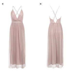 Pastel Pink Mesh Overlay High Slit Cami Dress