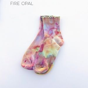 Ice dye colorful cotton crew socks. Hand dyed in small batches to create a custom finish as pretty as a watercolor painting!