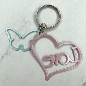 Pastel Pink and Blue Heart Love Butterfly Cut Out Keychain Keyring