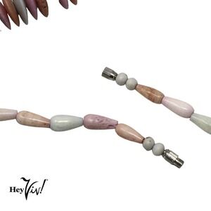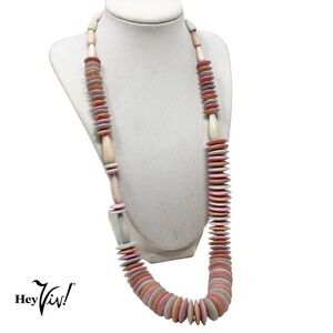 Pastel Pink and Green Flat Bead Necklace w Asymmetrical Look 26" Long - Hey Viv
