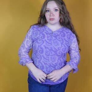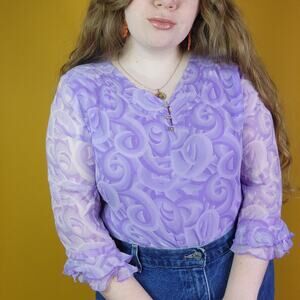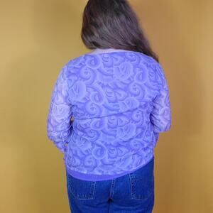 Pastel Purple Abstract Sheer Mesh Silk Top, XL