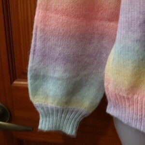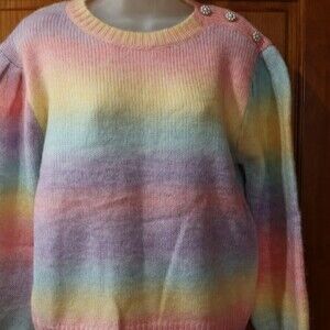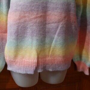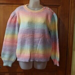 Pastel Rainbow Balloon Sleeve Knit Sweater Pearl Accents Kawaii Small